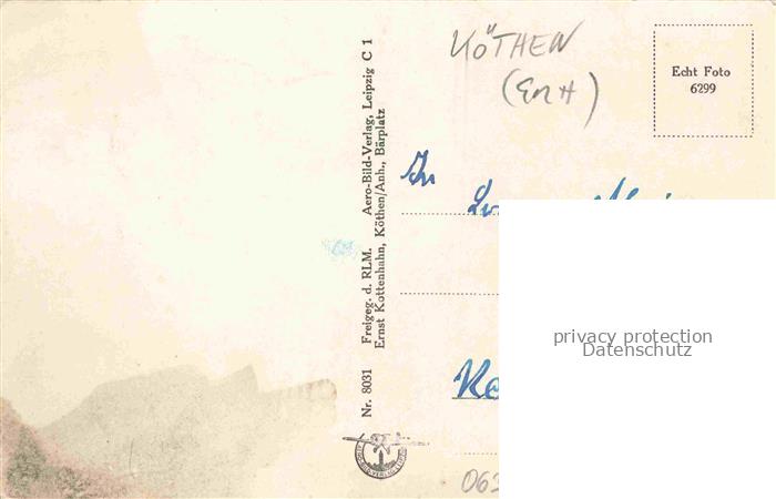 74006832 alte Postkarte Koethen Anhalt Fliegeraufnahme postalisch gelaufen Erhaltung siehe scans [WerneD78] KatCode: 11110015082180