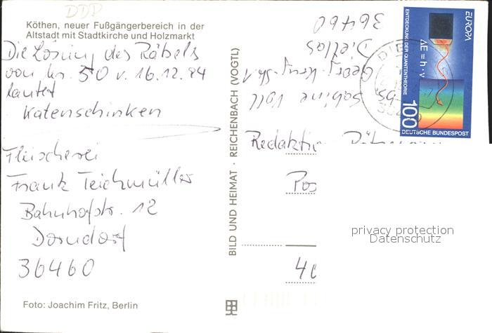 72008231 alte Postkarte Koethen Anhalt Fussgaengerbereich Altstadt Stadtkirche Holzmarkt postalisch gelaufen Erhaltung siehe scans KatCode: 11110015082180