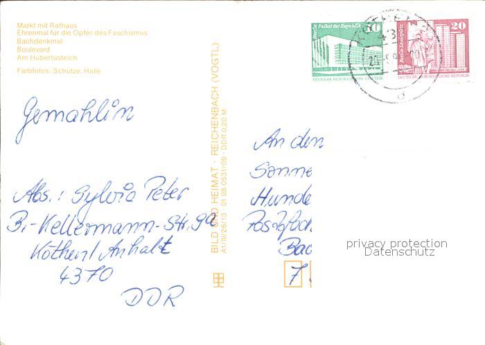 72416178 alte Postkarte Koethen Anhalt Hubertusteich Ehrenmal Opfer des Faschismus Bachdenkmal postalisch gelaufen Erhaltung siehe scans KatCode: 11110015082180