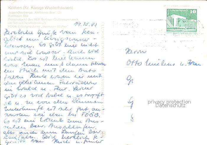 72374340 alte Postkarte Koethen Anhalt Jugendherberge Koethener See Neukoethen Erholungsheim Hermann Walter postalisch gelaufen Erhaltung siehe scans KatCode: 11110015082180