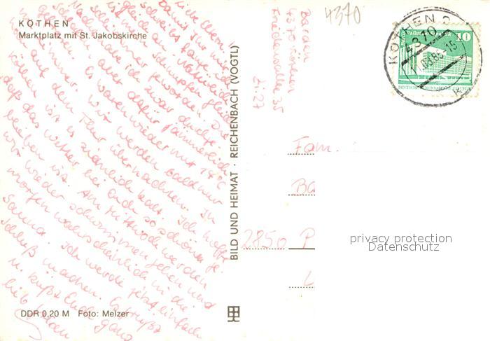 72920352 alte Postkarte Koethen Anhalt Marktplatz mit St. Jakobskirche postalisch gelaufen Erhaltung siehe scans [LiesaD40] KatCode: 11110015082180