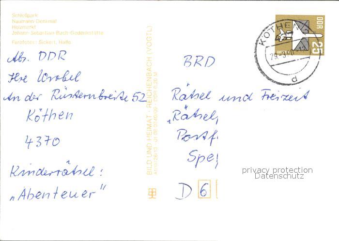 72401248 alte Postkarte Koethen Anhalt Naumann Denkmal Holzmarkt Johann Sebastian Bach Gedenkstaette postalisch gelaufen Erhaltung siehe scans KatCode: 11110015082180