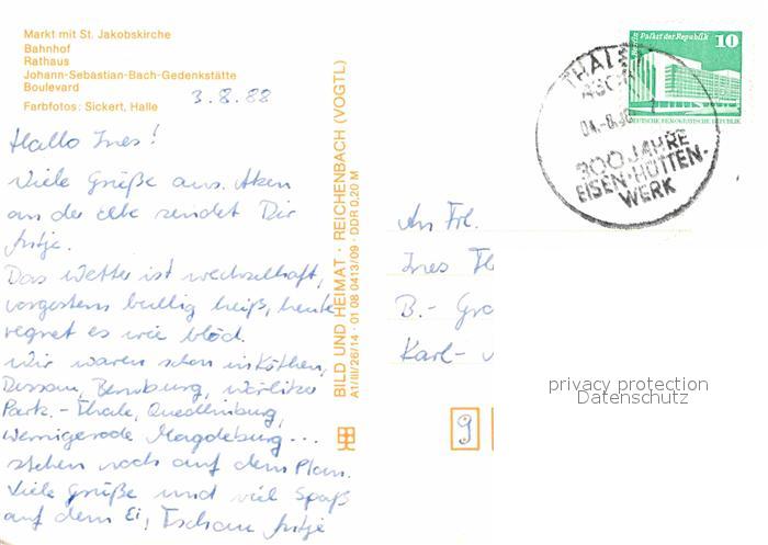 72654411 alte Postkarte Koethen Anhalt St Jakobskirche Bahnhof Rathaus Joh Seb Bach Gedenkstaette Boulevard postalisch gelaufen Erhaltung siehe scans [WerneD78] KatCode: 11110015082180
