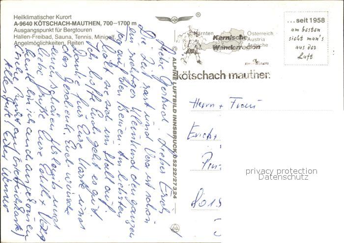 72013164 alte Postkarte Koetschach-Mauthen Kaernten Fliegeraufnahme postalisch gelaufen Erhaltung siehe scans KatCode: 11390212020307