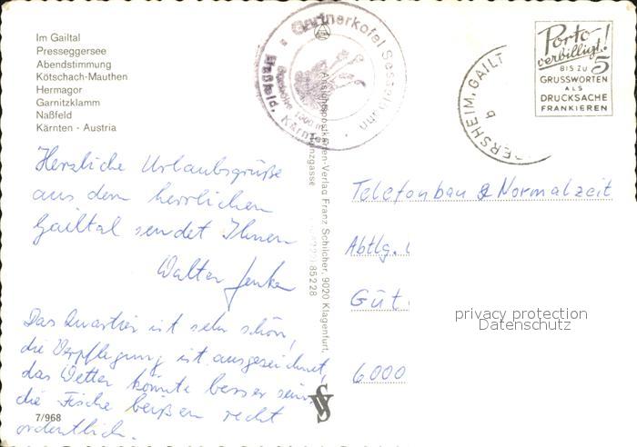 72395687 alte Postkarte Koetschach-Mauthen Kaernten Gailtal Presseggersee Garnitzklamm Nassfeld postalisch gelaufen Erhaltung siehe scans KatCode: 11390212020307