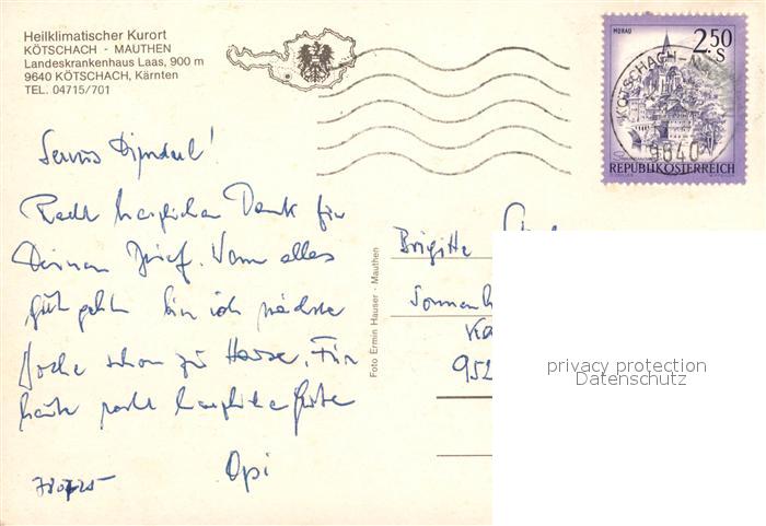 73164865 alte Postkarte Koetschach-Mauthen Kaernten Landeskrankenhaus Laas postalisch gelaufen Erhaltung siehe scans [LiesaD40] KatCode: 11390212020307