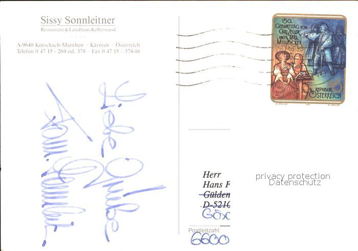 71909362 alte Postkarte Koetschach-Mauthen Kaernten Sissy Sonnleitner Restaurant Landhaus postalisch gelaufen Erhaltung siehe scans KatCode: 11390212020307