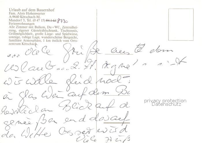 73364319 Koetschach-Mauthen Kaernten Urlaub auf dem Bauernhof Alpenpanorama postalisch nicht gelaufen Erhaltung siehe scans [FriedD77] KatCode: 11390212020307