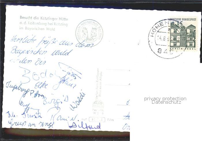 72143648 alte Postkarte Koetzting Bad Koetztinger Huette postalisch gelaufen Erhaltung siehe scans KatCode: 11110009372137