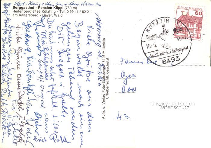 72409681 alte Postkarte Koetzting Berggasthof Pension Koeppl postalisch gelaufen Erhaltung siehe scans KatCode: 11110009372137