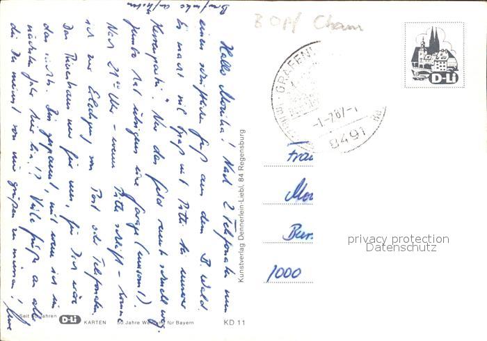 72226012 alte Postkarte Koetzting Hohenbogen Regen Veitskirche Hoellensteinsee Wallfahrtskirche Blaibachsee Zellertalsiedlung postalisch gelaufen Erhaltung siehe scans KatCode: 11110009372137