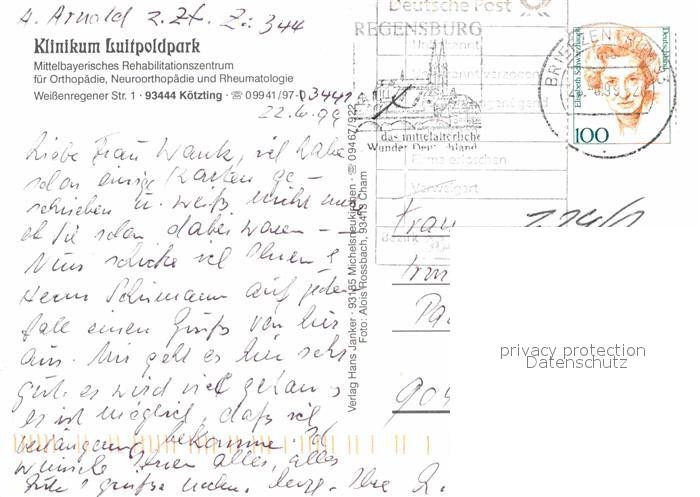 72916555 alte Postkarte Koetzting Klinikum Luitpoldjpark postalisch gelaufen Erhaltung siehe scans [NatalD47] KatCode: 11110009372137