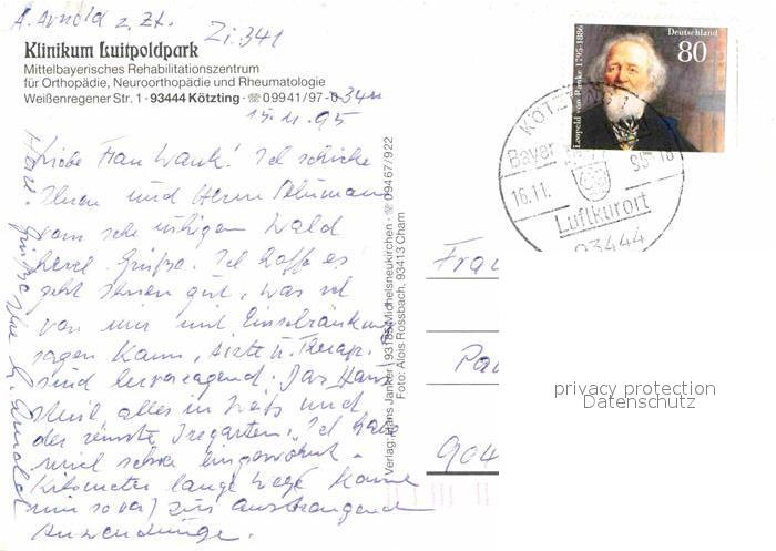 72917253 alte Postkarte Koetzting Klinikum Luitpoldpark postalisch gelaufen Erhaltung siehe scans [KathaD81] KatCode: 11110009372137