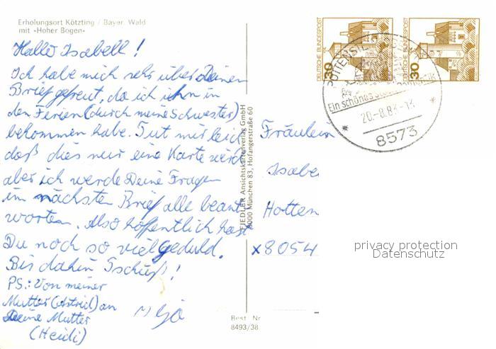 72624752 alte Postkarte Koetzting mit Hoher Bogen Trachtenkapelle postalisch gelaufen Erhaltung siehe scans [WerneD78] KatCode: 11110009372137