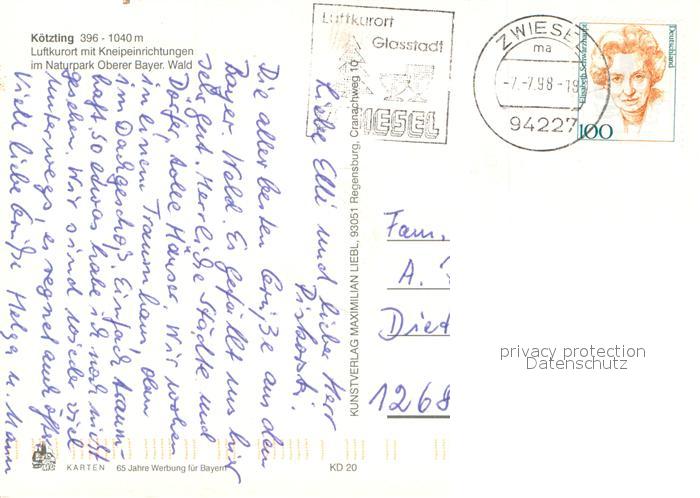 73737199 alte Postkarte Koetzting Pfingstreiter Brunnen Panorama Kirche Skulptur Wasserrad Rathaus postalisch gelaufen Erhaltung siehe scans [FriedD77] KatCode: 11110009372137