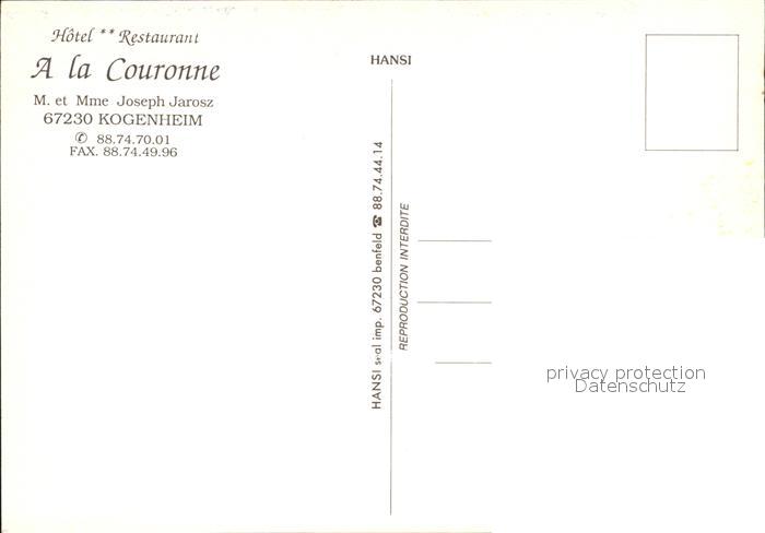 12579523 Kogenheim Hotel Restaurant A la Couronne postalisch nicht gelaufen Erhaltung siehe scans [FriedD77] KatCode: 11170067567246