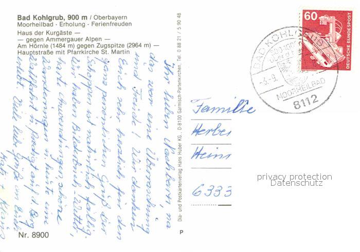 72849213 alte Postkarte Kohlgrub Bad Ammergauer Alpen Hoernle Zugspitze Pfarrkirche postalisch gelaufen Erhaltung siehe scans [KathaD81] KatCode: 11110009180112