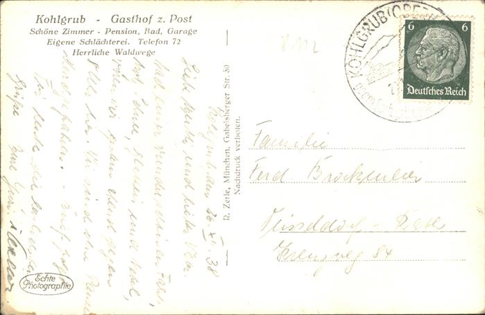 41219820 Kohlgrub Gasthof Post postalisch gelaufen Alte Ansichtskarte Postkarte alte Postkarte Lies Katcode 11110009180112