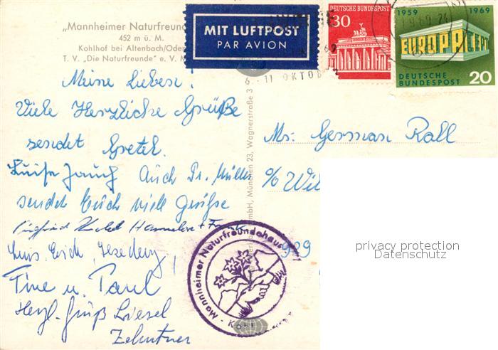 73550029 alte Postkarte Kohlhof Altenbach Mannheimer Naturfreundehaus postalisch gelaufen Erhaltung siehe scans [WerneD78] KatCode: 11110008226082