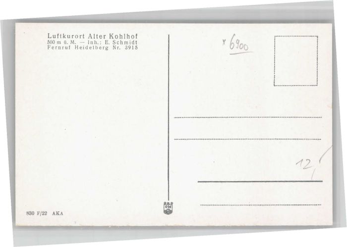 40709644 Kohlhof Heidelberg Gasthaus Pension Alter Kohlhof KatCode 11110008221000