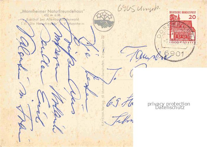74048936 alte Postkarte Kohlhof Heidelberg Wasserturm Mannheimer Naturfreundehaus Heidelberg postalisch gelaufen Erhaltung siehe scans [WerneD78] KatCode: 11110008221000