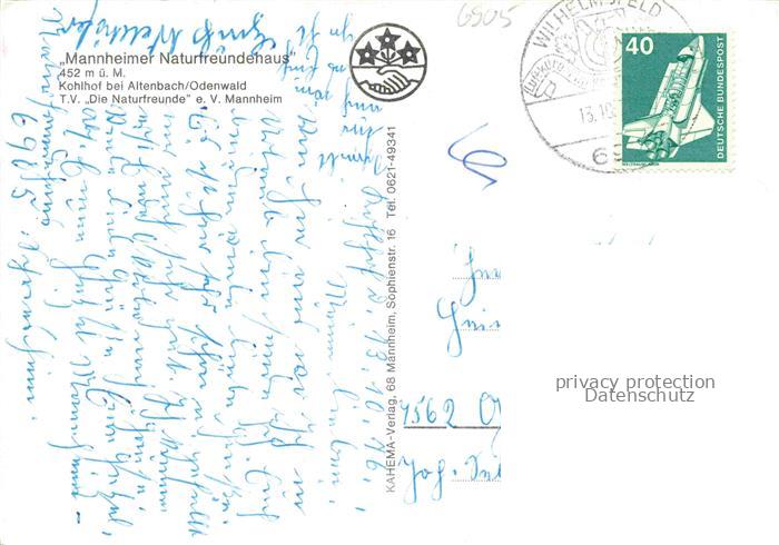 74048947 alte Postkarte Kohlhof Heidelberg Wasserturm Mannheimer Naturfreundehaus Neckarpartie Gasthof postalisch gelaufen Erhaltung siehe scans [WerneD78] KatCode: 11110008221000
