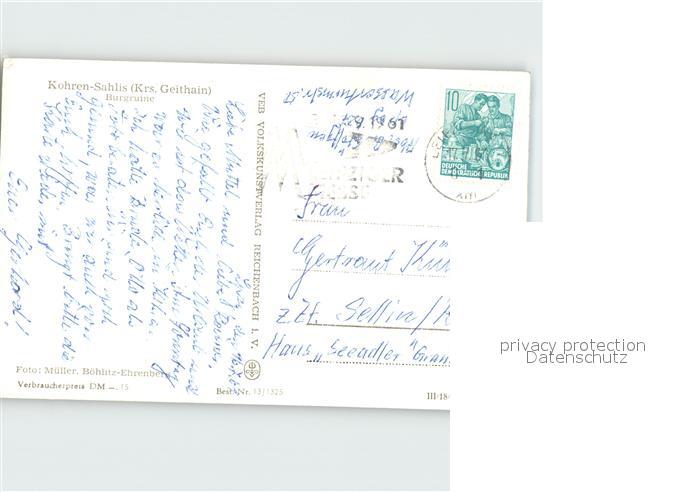 72359682 alte Postkarte Kohren-Sahlis Burgruine postalisch gelaufen Erhaltung siehe scans KatCode: 11110014379370