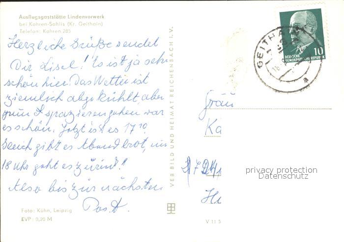 72073607 alte Postkarte Kohren-Sahlis Restaurant Lindenvorwerk postalisch gelaufen Erhaltung siehe scans KatCode: 11110014379370