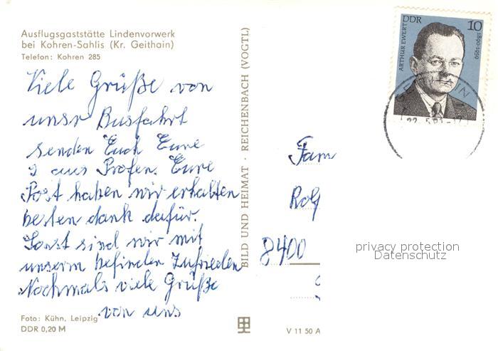 72928003 alte Postkarte Kohren-Sahlis Restaurant Lindenvorwerk postalisch gelaufen Erhaltung siehe scans [LiesaD40] KatCode: 11110014379370