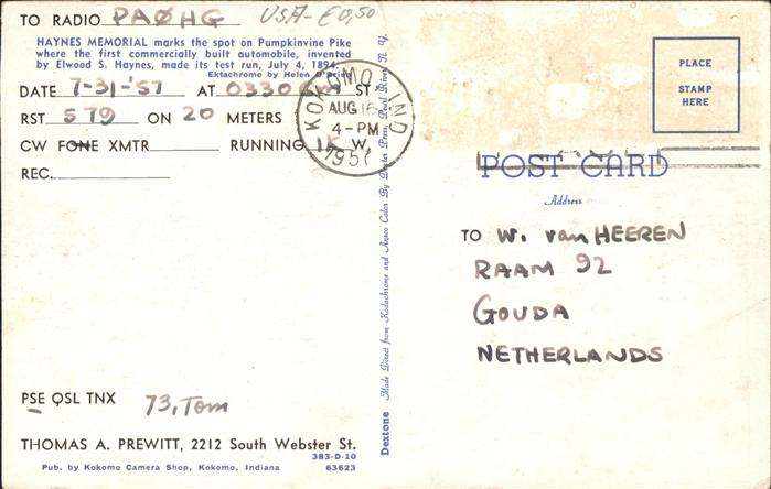 11491541 old postcard Kokomo Indiana Haynes Memorial Flag Automobile postalisch gelaufen Erhaltung siehe scans KatCode: 14140160000000