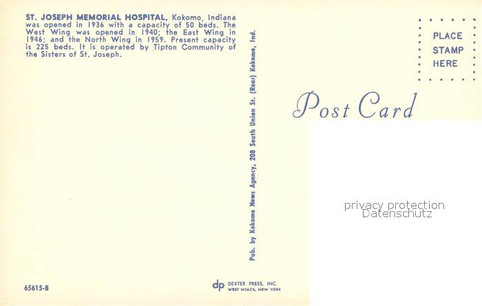 73716669 Kokomo Indiana St. Joseph Memorial Hospital Statue aerial view postalisch nicht gelaufen Erhaltung siehe scans [FriedD77] KatCode: 14140160000000