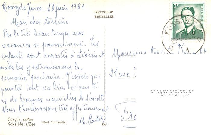 12932747 carte postale Koksijde Hotel Normandie postalisch gelaufen Erhaltung siehe scans [AndreD76] KatCode: 11070038000332