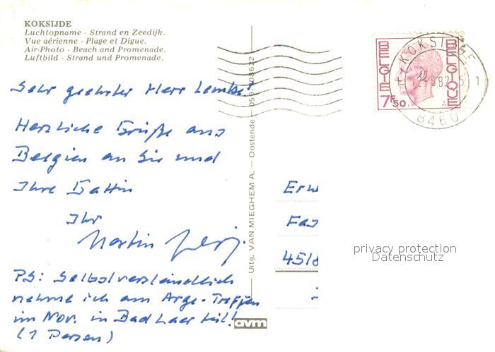 73687392 carte postale Koksijde Strand en Zeedijk luchtopname postalisch gelaufen Erhaltung siehe scans [FriedD77] KatCode: 11070038000332