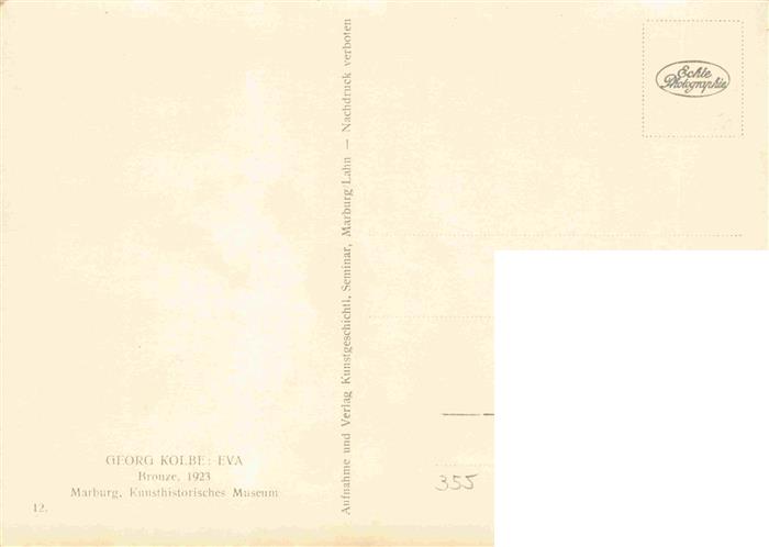 74013798 Kolbe Georg Skulpturen EVA Bronze Marburg Kunsthistorisches Museum postalisch nicht gelaufen Erhaltung siehe scans [SanaeD93] KatCode: 22500000001000