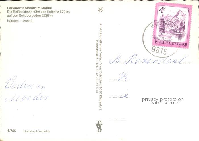 72230001 alte Postkarte Kolbnitz Ortsansicht mit Kirche Reisseckbahn Schoberboden postalisch gelaufen Erhaltung siehe scans KatCode: 11390