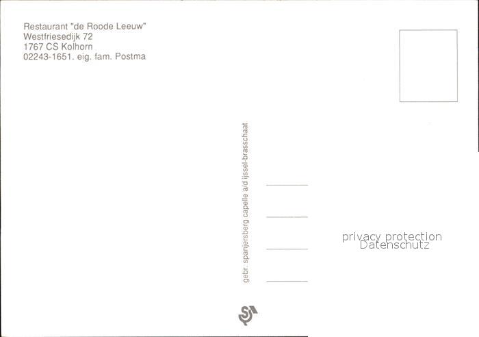 Kolhorn Restaurant de Roode Leeuw postalisch nicht gelaufen Erhaltung siehe scans
