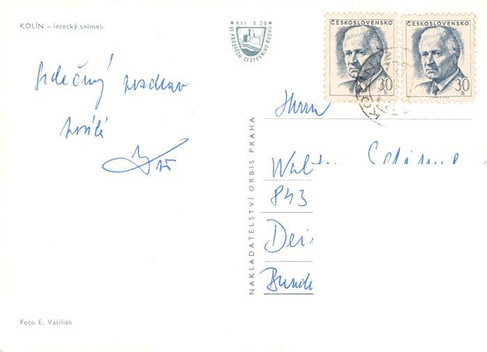 old postcard KOLIN nad LABEM Koeln Elbe CZ Letecky snimek postalisch gelaufen Erhaltung siehe scans [WerneD78]