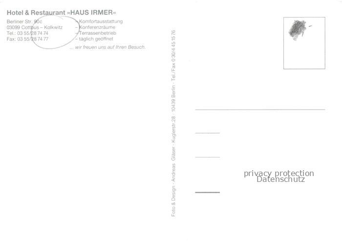 74043762 Kolkwitz Cottbus Hotel Restaurant Haus Irmer Hauswappen Retaurant Fremdenzimmer Kahnfahrt postalisch nicht gelaufen Erhaltung siehe scans [FriedD77] KatCode: 11110012052000
