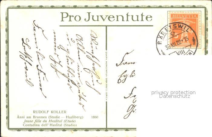 alte Postkarte Koller Rudolf aenni am Brunnen postalisch gelaufen Erhaltung siehe scans
