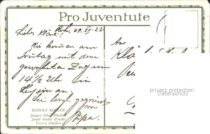 alte Postkarte Koller Rudolf Junges Schaf postalisch gelaufen Erhaltung siehe scans