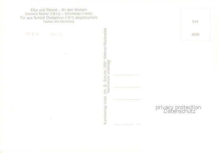73248197 Kollmar Holstein Elbe und Strand An den Wettern Greves Muehle Windmuehle Deichkate Tuer aus Schloss oevelgoenne Hafen Stintnetz postalisch nicht gelaufen Erhaltung siehe scans [FriedD77] KatCode: 11110001061118