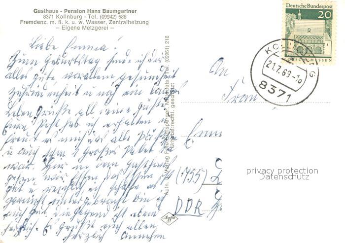 73646207 alte Postkarte Kollnburg Burgturm Panorama Gasthaus Baumgartner Gaststube postalisch gelaufen Erhaltung siehe scans [WerneD78] KatCode: 11110009276128