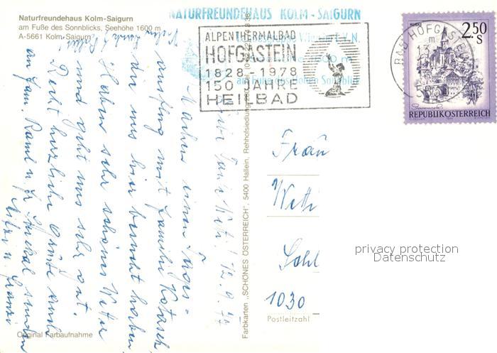 73236489 alte Postkarte Kolm Saigurn Naturfreundehaus am Sonnblick postalisch gelaufen Erhaltung siehe scans [LiesaD40] KatCode: 11390322050617