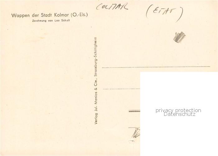 13846725 Kolmar Colmar Elsass Wappen der Stadt Kolmar postalisch nicht gelaufen Erhaltung siehe scans [FriedD77] Frie Katcode 11170068268066