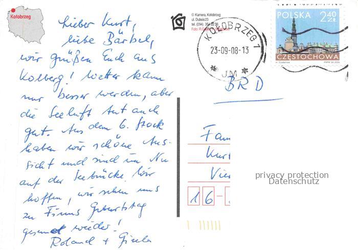 74043782 old postcard KOLOBRZEG Kolberg Ostseebad PL Hotel Strand Seebruecke postalisch gelaufen Fliegeraufnahme Erhaltung siehe scans [FriedD77] KatCode: 11410