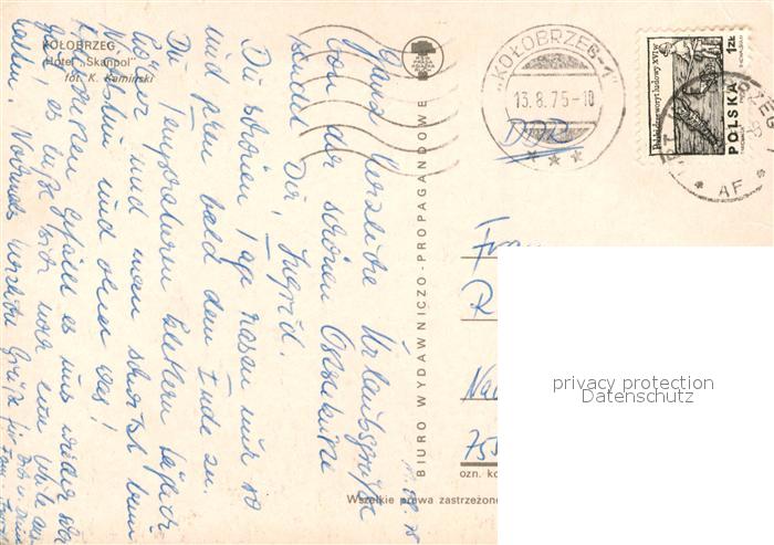 old postcard Kolobrzeg Polen Hotel Skanpol postalisch gelaufen Erhaltung siehe scans [KathaD81]