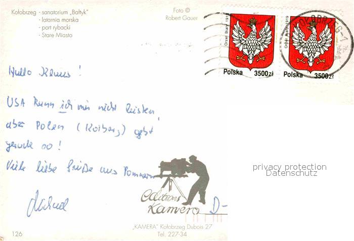 old postcard Kolobrzeg Polen Sanatorium Baltyk Latarnia morska Port rybacki Stare Miasto postalisch gelaufen Erhaltung siehe scans [WerneD78]