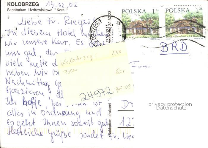 old postcard Kolobrzeg Polen Sanatorium Uzdrowiskowe Koral postalisch gelaufen Erhaltung siehe scans