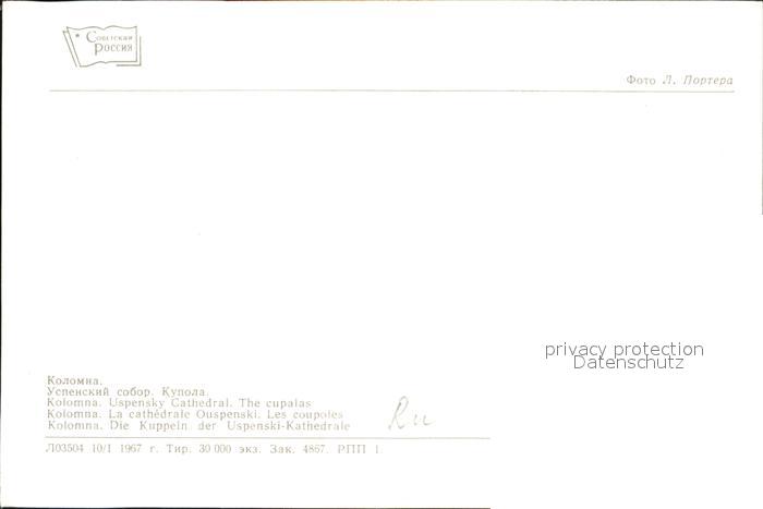 Kolomna Uspenski Kathedrale postalisch nicht gelaufen Erhaltung siehe scans