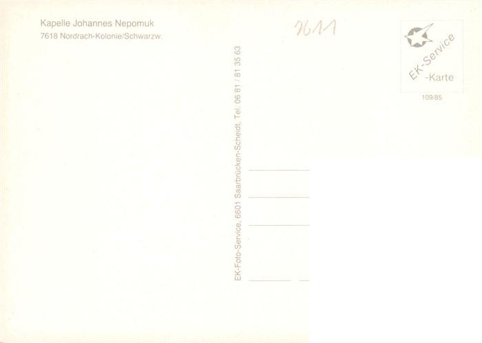 73927978 Kolonie Nordrach Kapelle Johannes Nepomuk Altar postalisch nicht gelaufen Erhaltung siehe scans [FriedD77] KatCode: 11110008317085